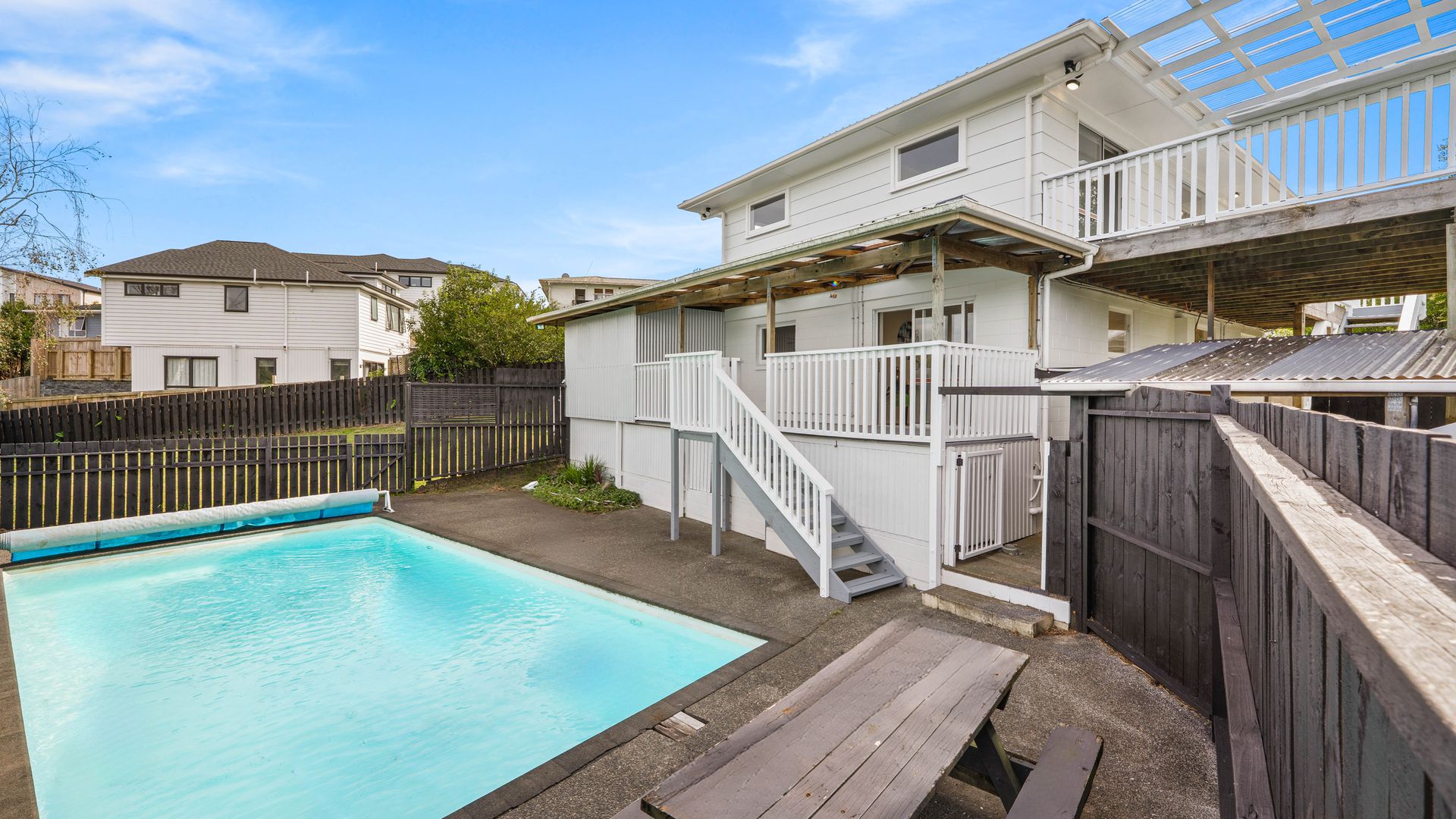 Step outside and you’ll find the true standout—an expansive outdoor area centered around a huge swimming pool, ideal for summer living and entertaining on a grand scale. There’s plenty of room for kids and pets to play, along with ample off-street parking for cars, boats, or trailers.