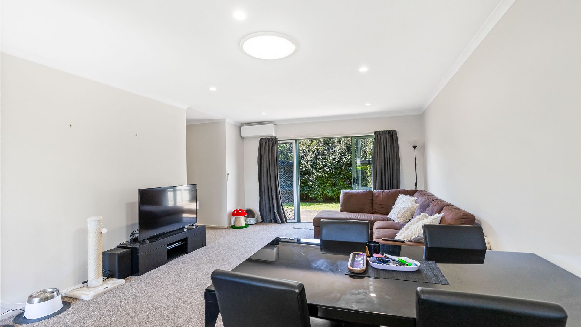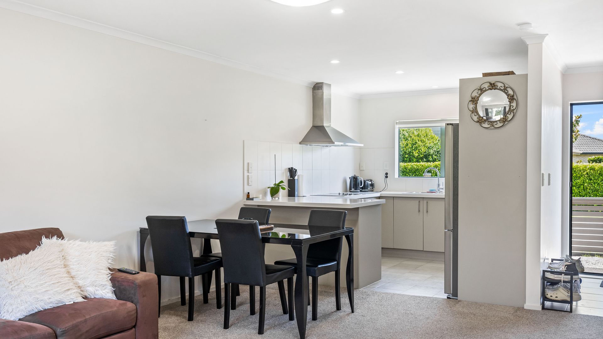 The living area opens seamlessly to a sunny patio and private garden, creating a wonderful indoor-outdoor flow. A beautiful space to relax, entertain or enjoy your morning coffee.