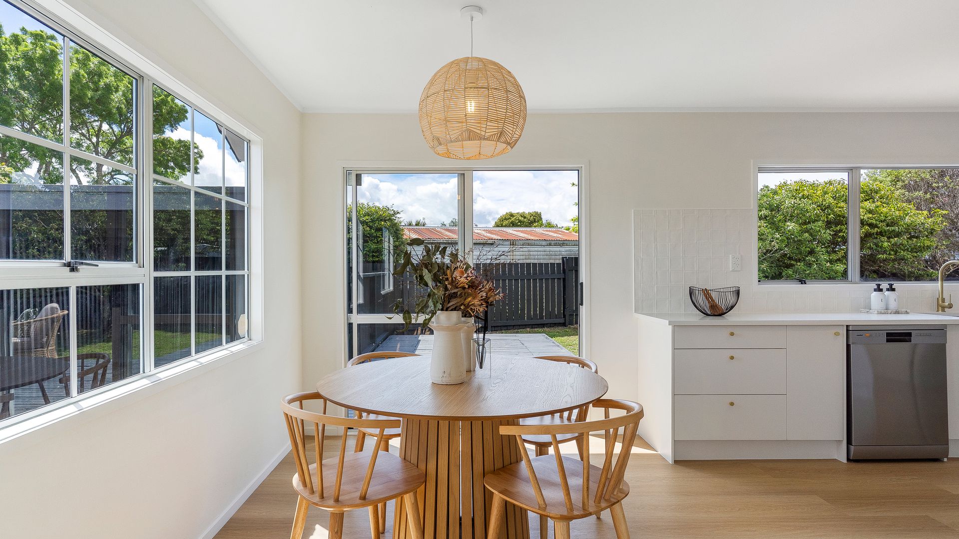 Step inside and be greeted by a light-filled lounge that makes you want to kick back and relax. The open-plan dining and kitchen area are designed with family living in mind. The kitchen is beautifully modern, offering all the bells and whistles you need to unleash your inner chef.